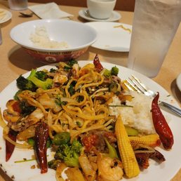 I've come to Chang's several times. Always delicious, but maybe that's because you serve yourself. I usually go with the same food palate each time. There is one cook who is always super friendly and talkative, probably the reason we pick this location over the ones closer to us. Servers are a hit or miss but usually are also kind and friendly. This time, our server looked like she would rather be anywhere else but on a holiday that is super busy, I can understand. The thing I would say is if you have any severe allergies to any food, I would be careful when picking out your food or not come all together. All the food is cooked on the same stove (which is cleaned) and since it is serve yourself, utensils are mixed and matched (ex: people use the same utensils for tomato's, corn, jalapeños, broccoli, etc) instead of using the designated utensil for the food item. Overall, I always come back, time after time because it is delicious. They do not take reservations so I would recommend on a weekend to come right when they open at dinner time (5pm). I have never been for lunch so that experience could be completely different.